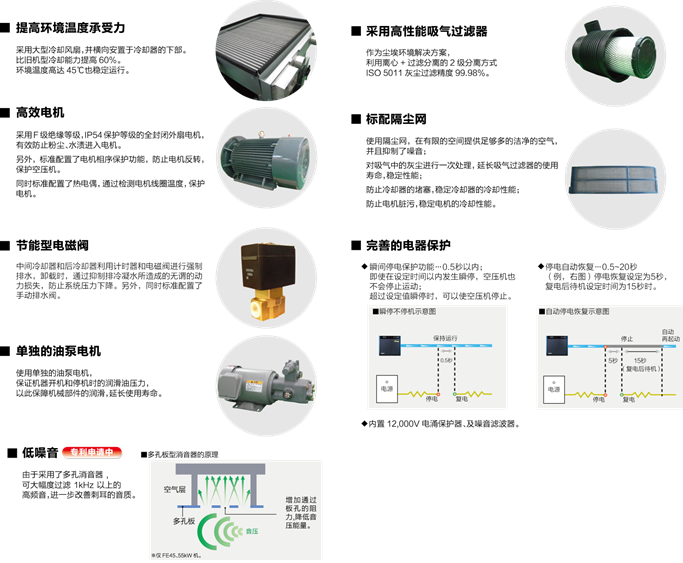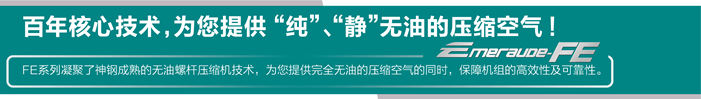 FE系列無油式螺桿空壓機(jī)凝集了神鋼百年的壓縮機(jī)研發(fā)、生產(chǎn)技術(shù),為您提供完全無油的壓縮空氣